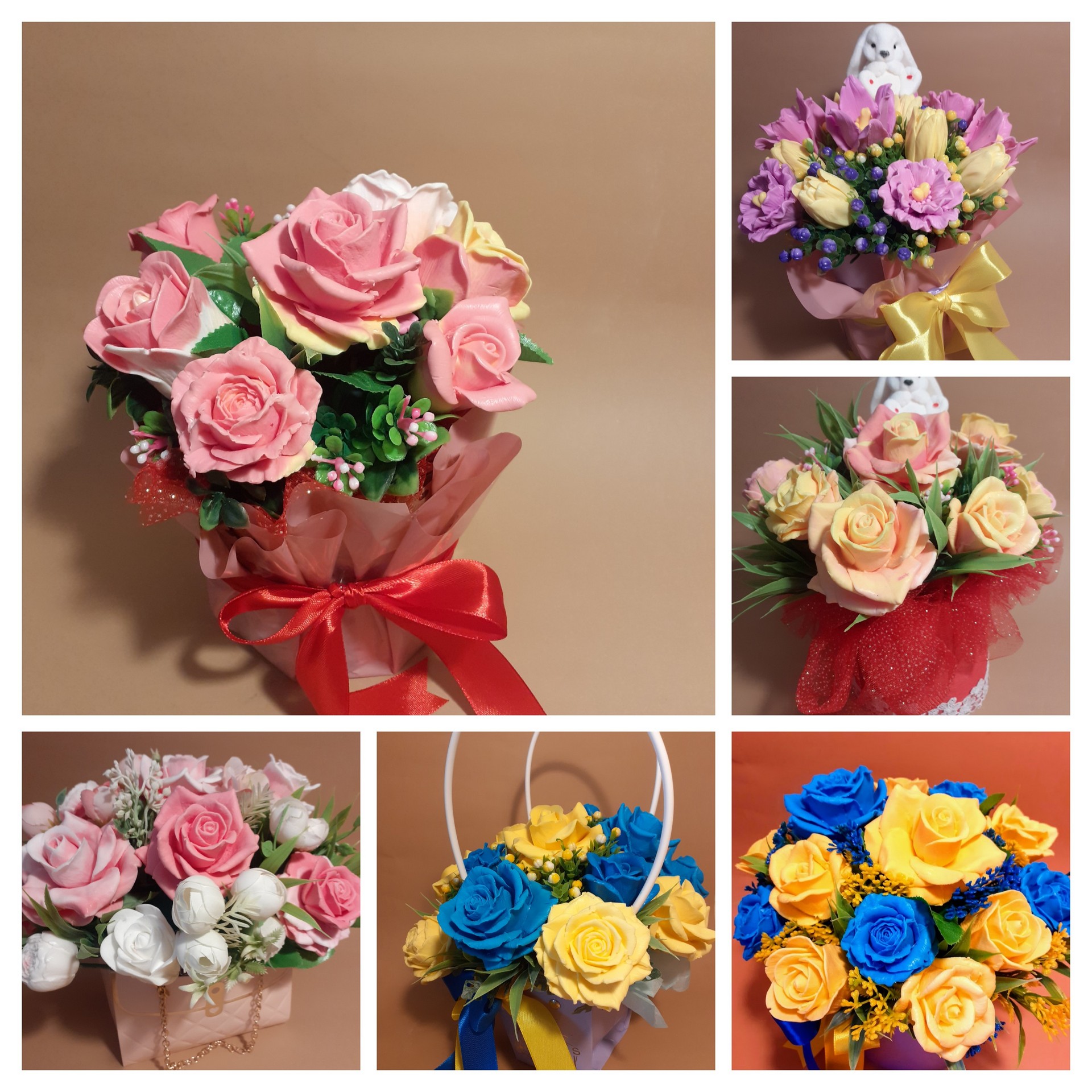 Кожен мильний букет створюється вручну за вашим замовленням. Ви обираєте кольори, аромат і стиль — ми втілюємо це у витвір мильного мистецтва.